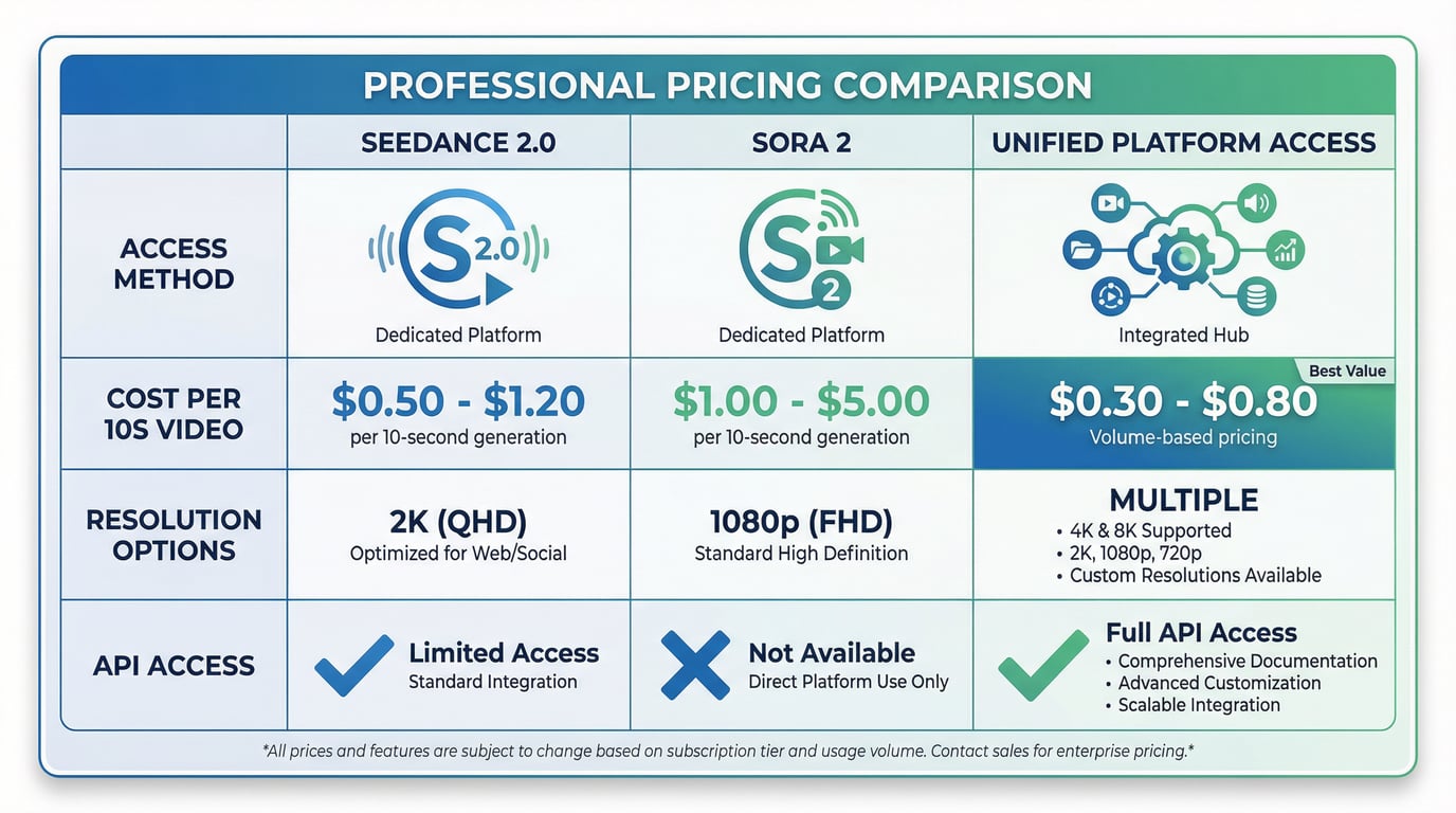 コストの方程式は動画あたりの価格を超えて、成功率要因を含みます。最初の試行でのSeedance 2.0の90%の成功率は、通常、複数の再試行なしで使用可能な結果を得ることを意味し、使用可能な動画あたりの実質コストを効果的に削減します。成功率の低いモデルでは、再試行と品質フィルタリングの予算割り当てが必要となり、動画あたりの名目価格が低く見えても、実効コストが倍になる可能性があります。
